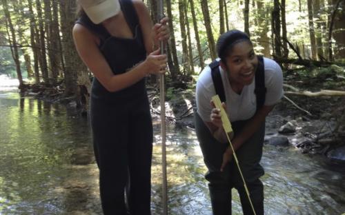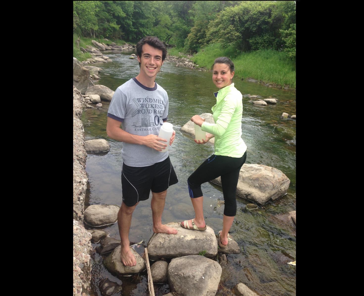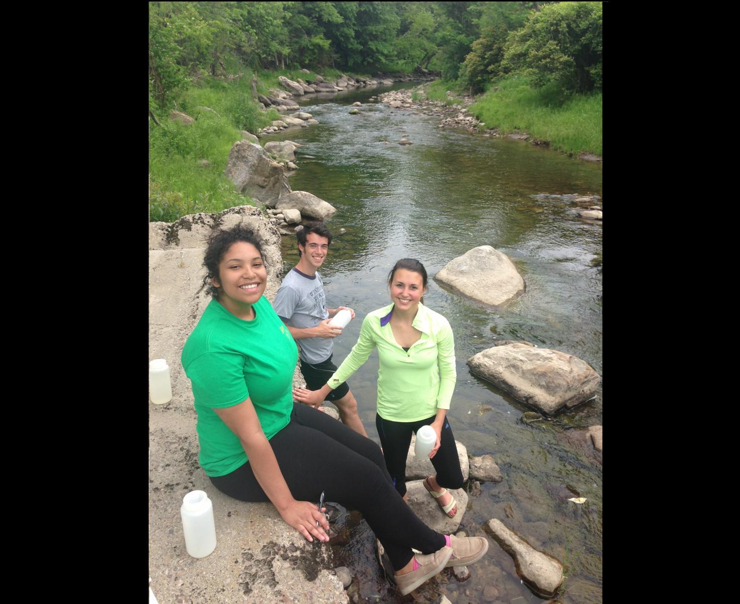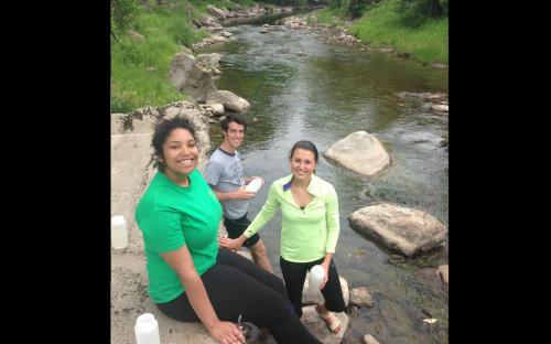 RACC interns Jaleeza, Natalie, and Jack spent the summer working on the Saint Michael's College campus working with Laboratory Technician Katie Chang and Dr. Declan McCabe (Biology Department) collecting, analyzing, and evaluating in the Missisquoi and Winooski watersheds.