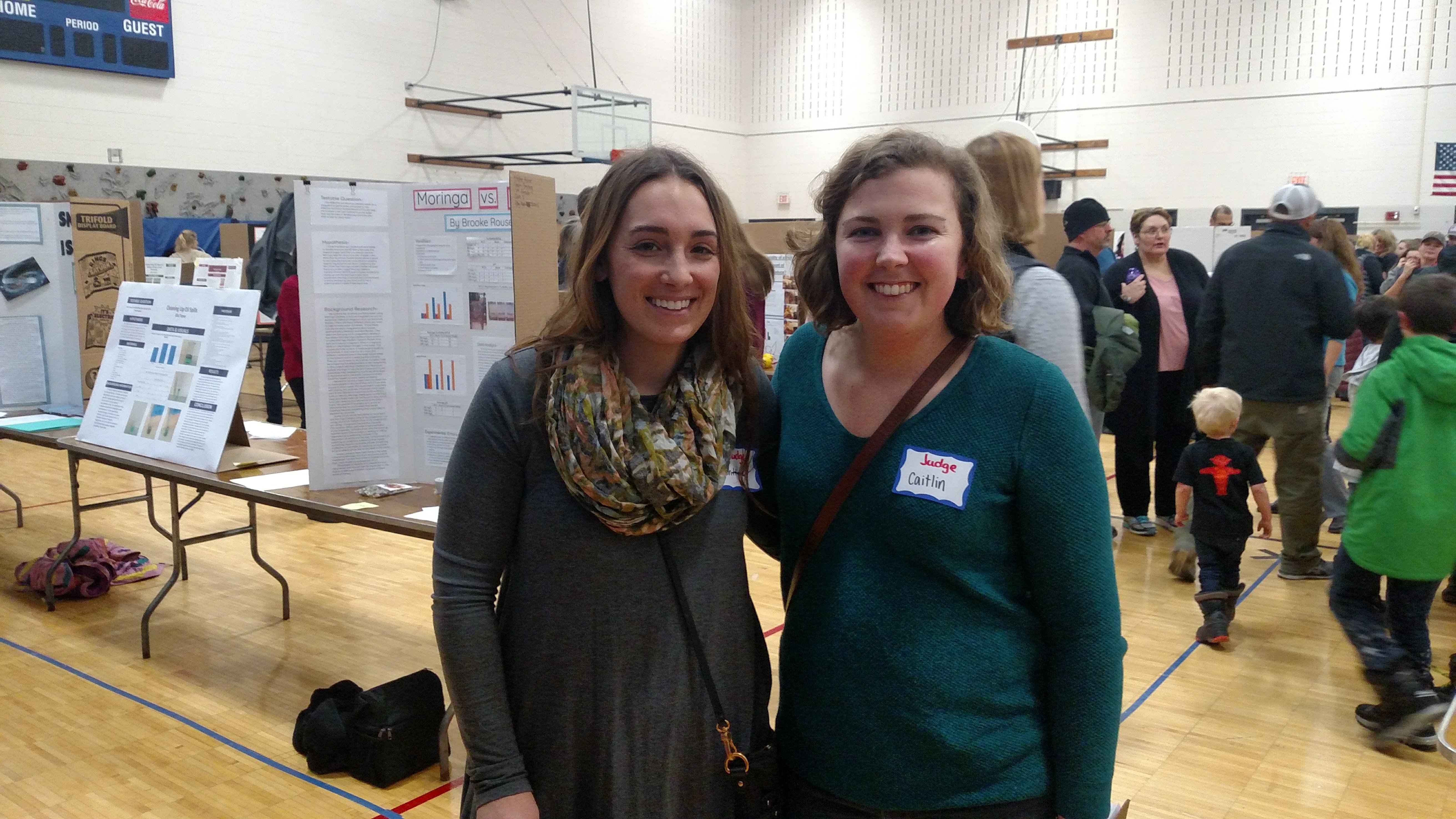 Brittany Lancellotti and Caitlin Crossett at the Milton Middle School Science and Engineering Fair Three Vermont EPSCoR graduate research assistants (GRAs) were invited judges for a local science and engineering fair held at Milton Middle School in Milton, VT on February 8, 2018. Wilton Burns, Caitlin Crossett, and Brittany Lancellotti acted as judges for science and engineering projects at the event.